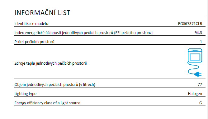 | Objem trouby L | 77 |